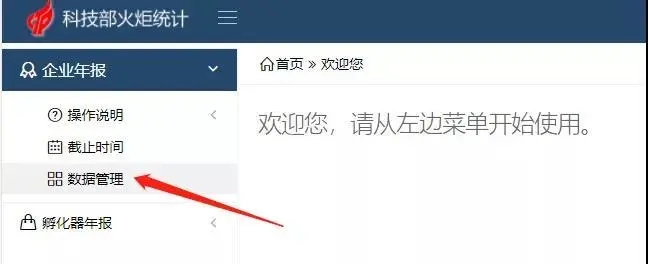 進入『科技部火炬統(tǒng)計調(diào)查』-『我要辦理』;